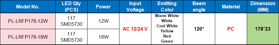 Specification Of POOLUX New Design PC 178mm AC12V RGB Color Changing LED Liner Pool Light